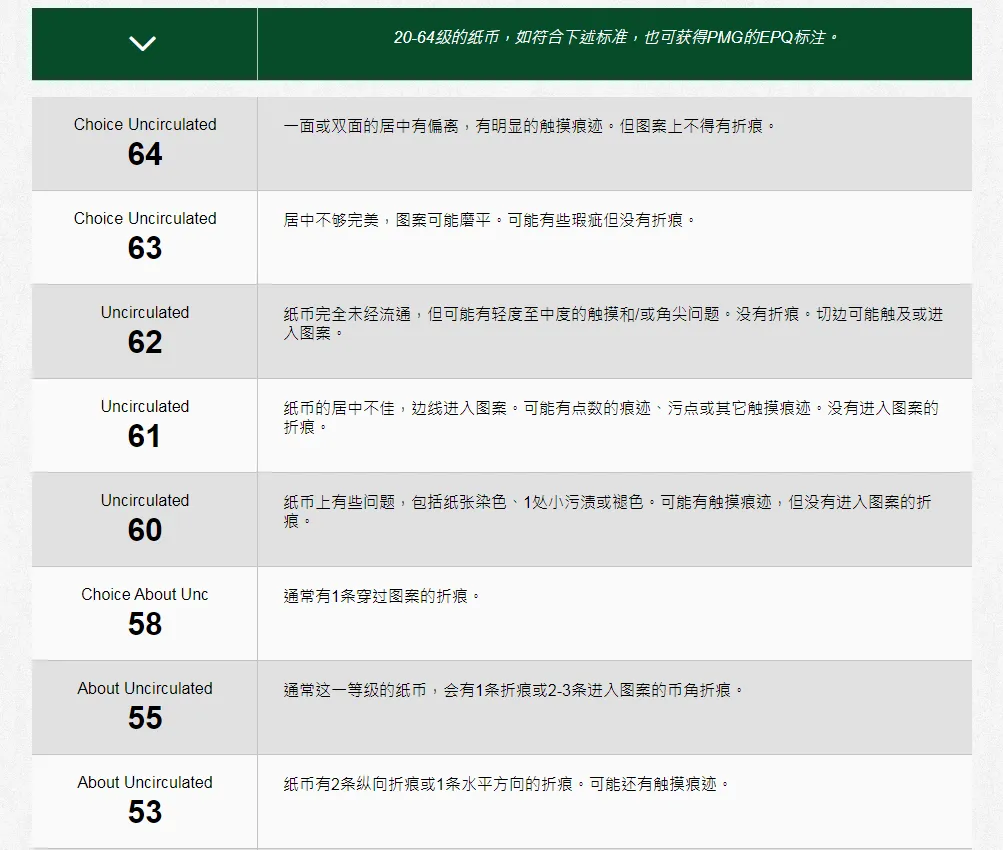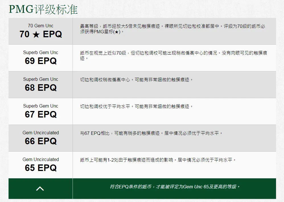 PMG 使用国际公认的谢尔顿70级数值评级标准。